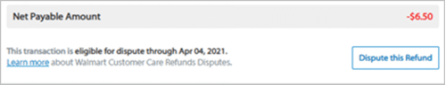 6. 在交易描述列下找到沃尔玛客户服务退款。选择NET PAYABLE(应付净额)列下列出的金额以开始争议流程。