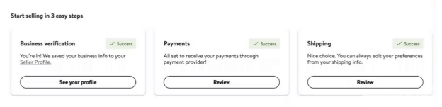当完成物流设置后,您的Seller Center主页中的Shipping一栏会显示为绿色的✔Success。当您完成了账户创建的三个步骤,且都显示为绿色的✔Success时,说明您已经成功完成了账户设置。